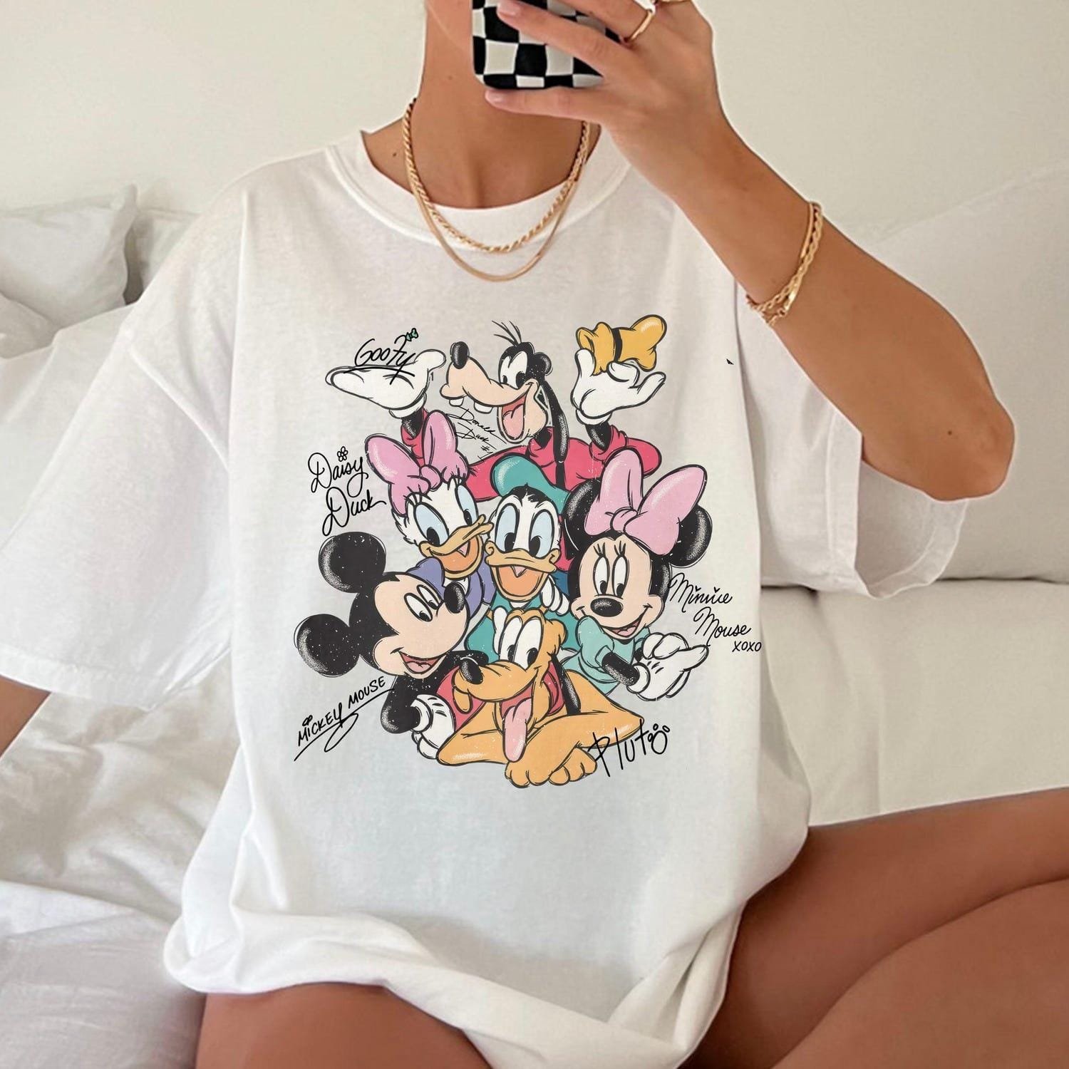 Retro Mickey And Friends Signatures T-Shirt