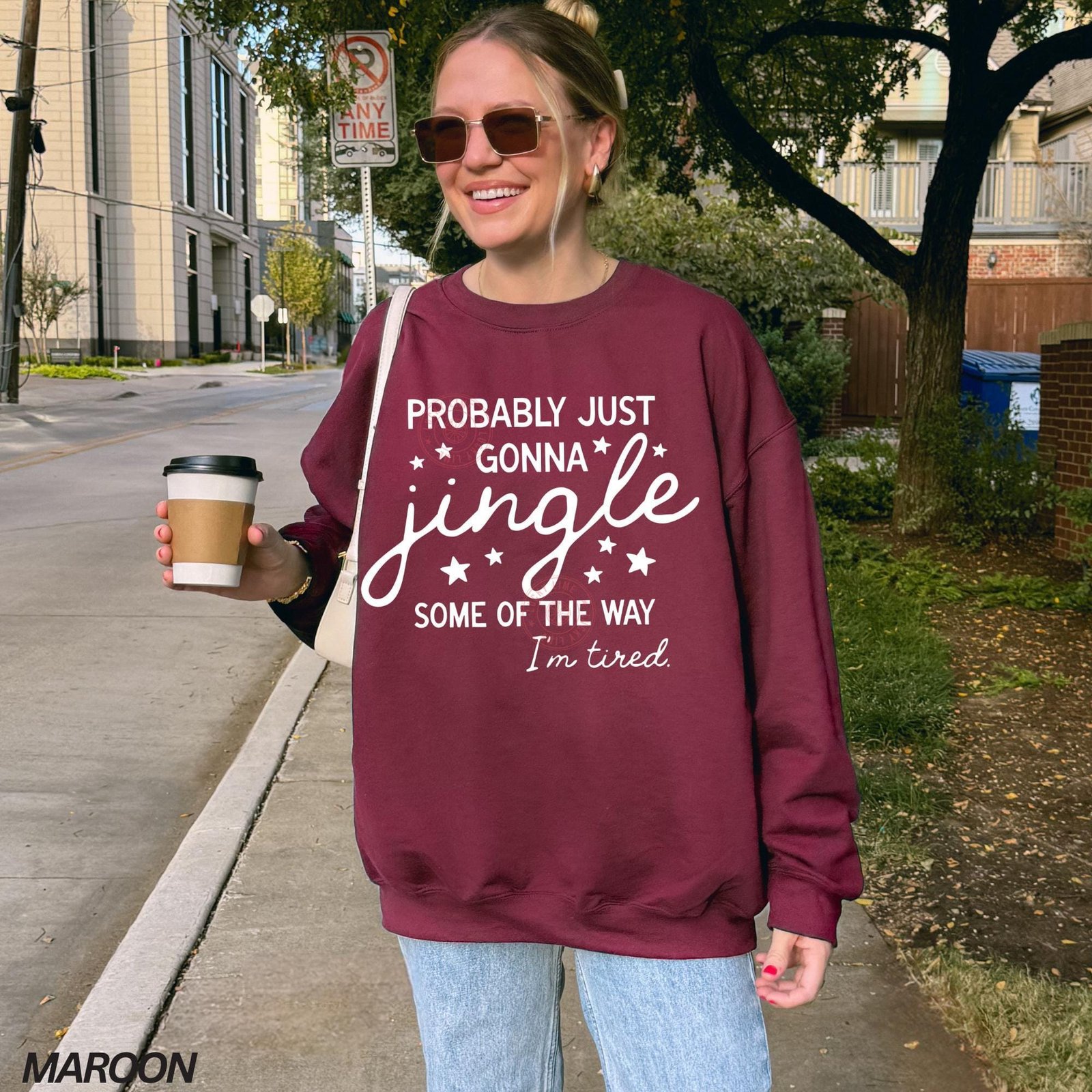 Funny Christmas Sweatshirt, Probably Just Gonna Jingle Some Of The Way I’m Tired Sweatshirt, Size Range From Small To Extra Large, All-gender Fashion Trends For Men And Women, Fashion Variety, Statement Fashion Items, Assorted Colors