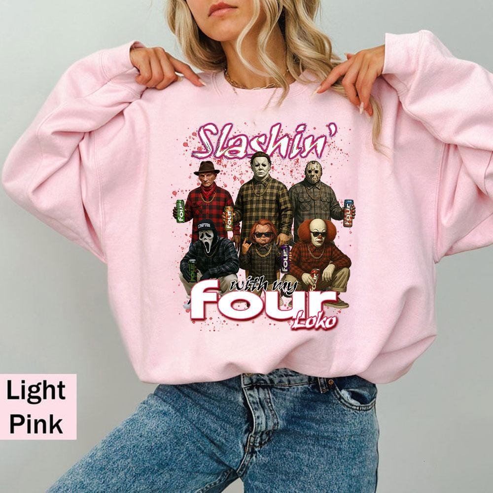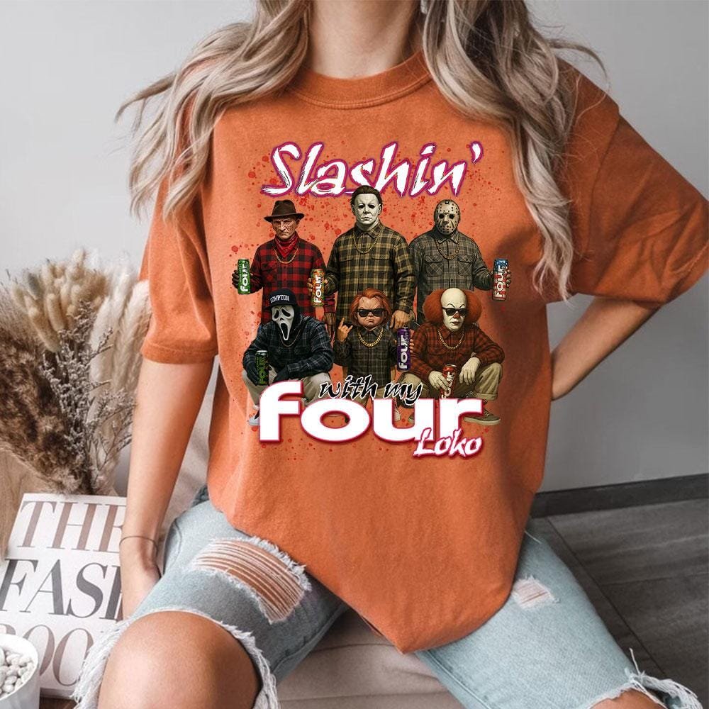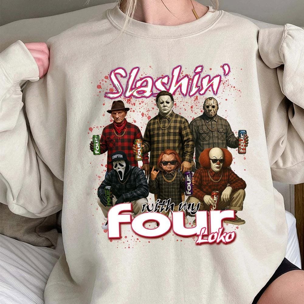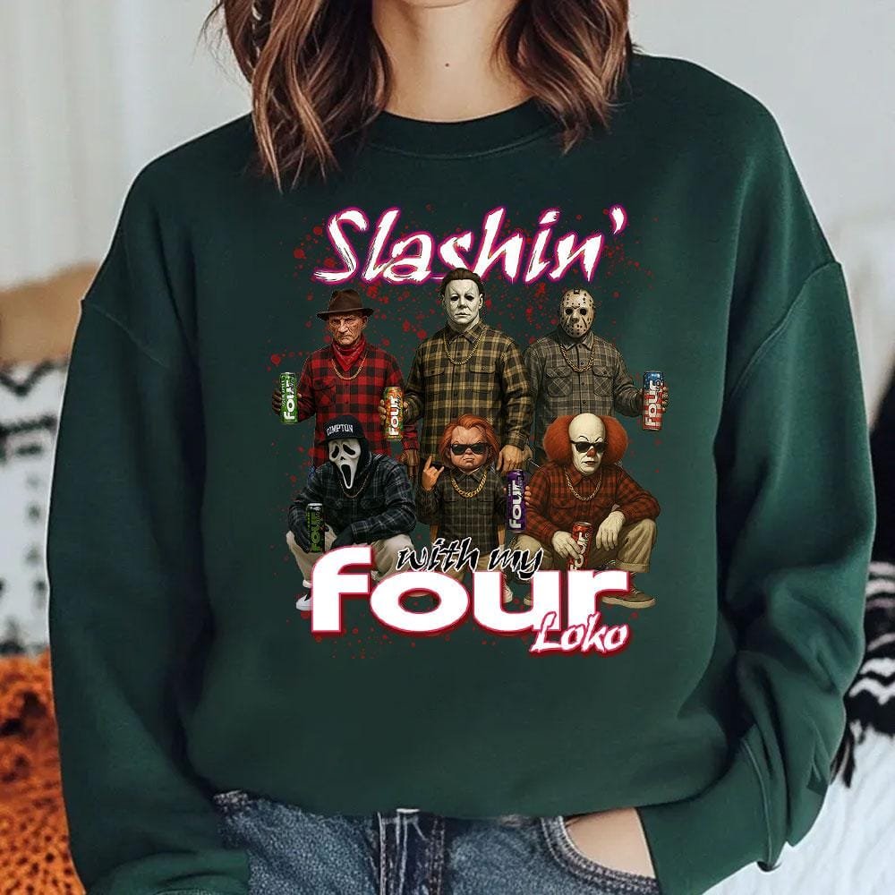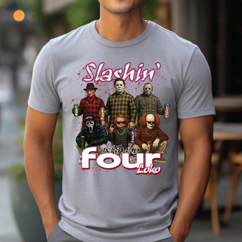 Slashin With My Four Loko Shirt, Horror Characters Shirt